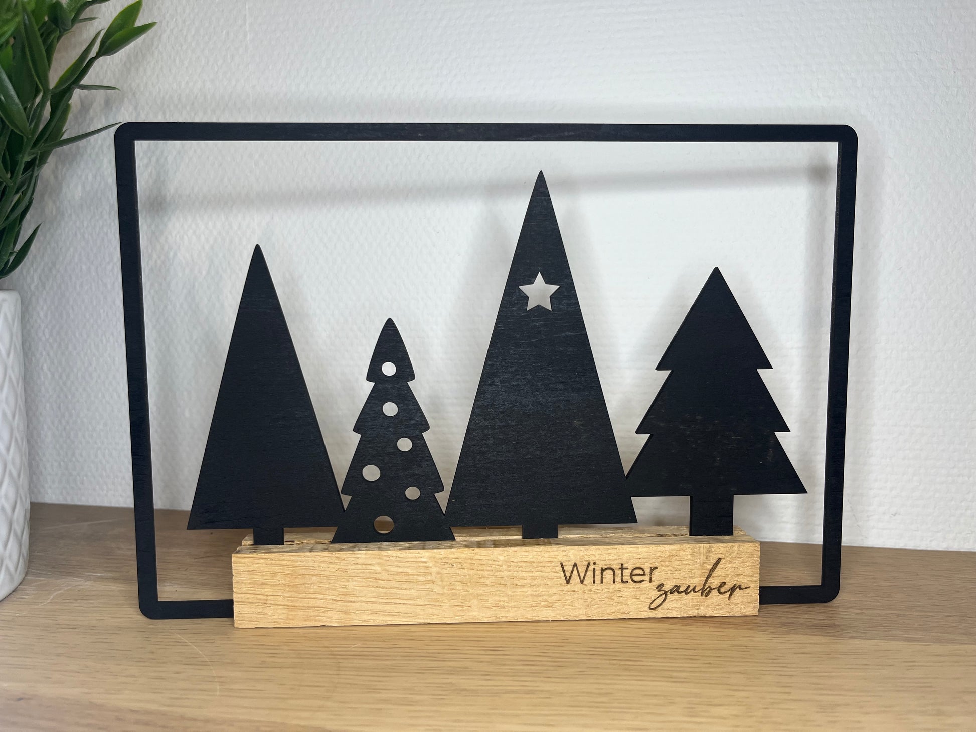 Wunderschöner gelaserter Schriftzug „Weihnachten“ aus Holz. Der Fuß bildet sich aus zwei Klötzchen, in das vordere ist „Winterzaubber“ eingraviert. Wunderschön & schlicht, egal ob als Geschenk oder einfach zum selber dekorieren! Größe des Aufstellers ca. 22 x 15cm.🤍