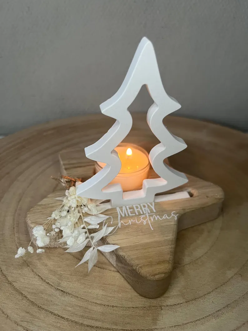 Ich verkaufe hier ein kleines Weihnachtsgeschenk zum verschenken oder zum selber behalten 😉 . Das Geschenk besteht aus einem Holzsockel aus Eiche in Form eines Sterns und einem Einschieber in Form eines Tannenbaums. Der Sockel ist mit der Aufschrift „Merry Christmas“ in weiß verziert, außerdem mit dabei ein weißes Teelicht. Ein schönes Set als kleine Freude unter dem Weihnachtsbaum! 🤍❄️