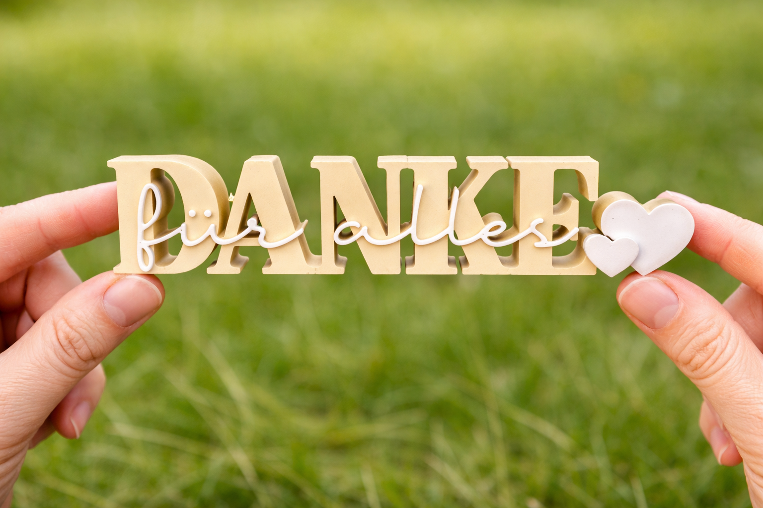 Schriftzug „Danke für alles“. Ihr bekommt hier einen knalligen Statement Schriftzug in den Farben eurer Wahl. Der Schriftzug entsteht im 3D-Drucker und ist aus umweltfreundlichen PLA. Ihr könnt jeweils auswählen zwischen der Basisfarbe (im Beispiel beige) und der Zweitfarbe (im Beispiel weiß). Eine Übersicht aller Farben findet ihr im Bild 2.