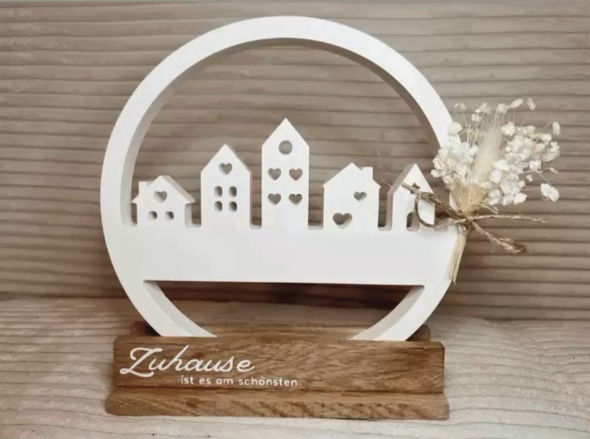 Ich verkaufe hier einen „Willkommensring“ auf einem Holzsockel. Der Holzsockel ist liebevoll mit der Aufschrift: „Zuhause ist es am schönsten“ dekoriert. Wunderbar als kleines Geschenk, egal ob Einzug oder Geburtstag... oder eben einfach zur Deko für sich selbst 🤍